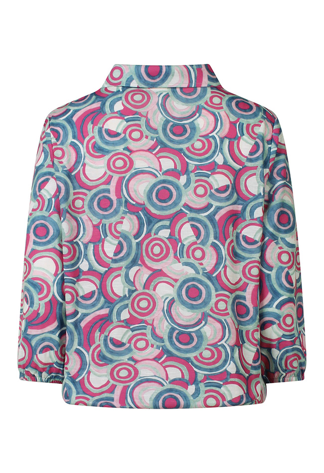 Deze stijlvolle dames top combineert comfort met een speelse uitstraling. De top is uitgevoerd met elegante 3/4 mouwen, waardoor hij perfect is voor zowel het voor- als najaar. De V-hals met subtiel polokraagje geeft het ontwerp een vrouwelijke en tegelijkertijd sportieve touch. Dankzij het elastiek in de taille valt de top mooi aangesloten en wordt het silhouet op een flatterende manier geaccentueerd.