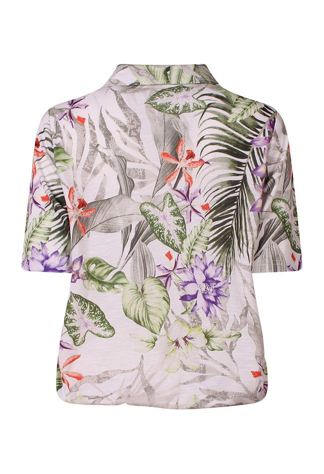 Breng kleur en plezier in je garderobe met deze damespolo, versierd met een levendig, multicolor bloemmotief. Het zachte, ademende materiaal zorgt voor ultiem comfort, terwijl het subtiele elastiek in de taille een flatterende, vrouwelijke pasvorm creëert. Perfect te combineren met jeans, rokjes of shorts voor een casual, frisse look. Ideaal voor zonnige dagen, weekenduitjes of gewoon om je dagelijkse outfit een vrolijke twist te geven.