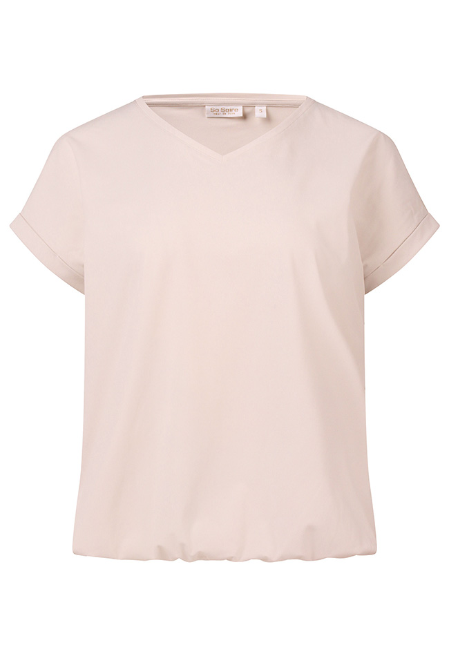 Comfortabel dames T-shirt van travelstof met een moderne en verzorgde uitstraling. De stof is licht, soepel en kreukvrij, ideaal voor elke dag. De omslagmouwen geven een casual en trendy detail, terwijl de elastische body zorgt voor een mooie, aansluitende pasvorm en extra draagcomfort. Perfect te combineren met een broek, rok of short voor een stijlvolle en praktische look.