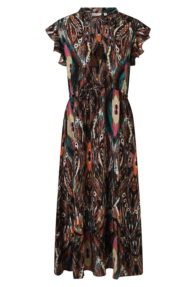 Stijlvolle damesjurk van viscose met een soepel vallende pasvorm en een comfortabele feel. Het gedessineerde design zorgt voor een frisse en vrouwelijke uitstraling. De subtiele kwastjes geven de jurk een speels en trendy detail. Ideaal voor zowel casual als zomerse gelegenheden en makkelijk te combineren met sandalen of sneakers voor een relaxte, modieuze look.