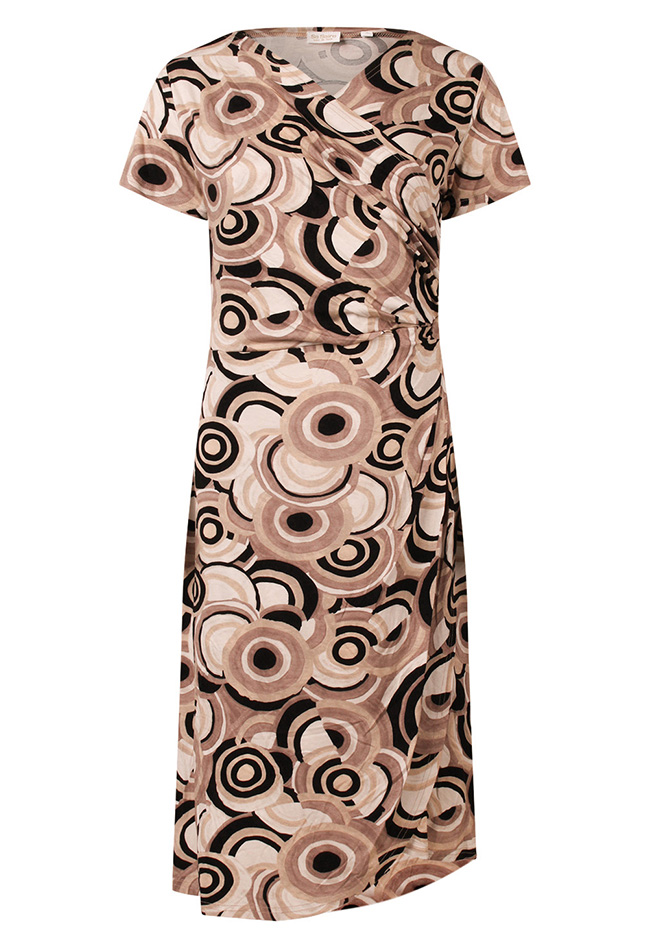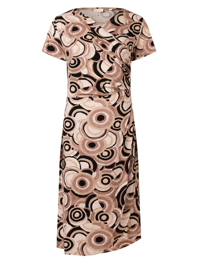 Elegante damesjurk met een stijlvol bollendessin voor een vrouwelijke en tijdloze uitstraling. De overslag zorgt voor een flatterende pasvorm en een mooi silhouet. Gemaakt van comfortabel en soepel vallend materiaal dat prettig draagt gedurende de hele dag. Perfect voor zowel casual als meer geklede momenten en eenvoudig te combineren met sandalen of hakken voor een complete look.