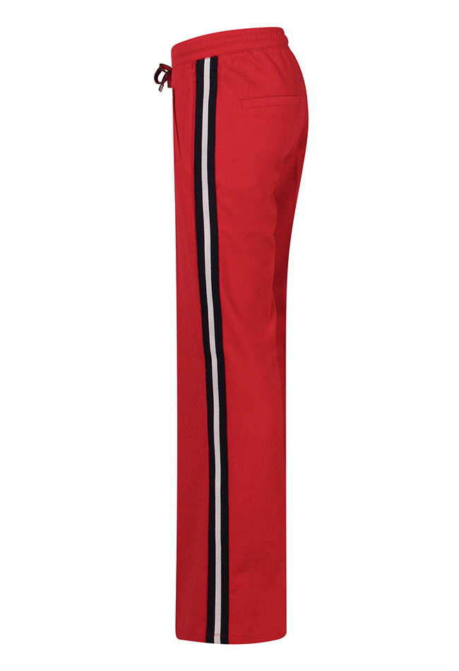Deze pantalon combineert comfort en stijl met een subtiele sporty touch. De dubbele streep over de zijkant van het been geeft een sportieve uitstraling, terwijl het opnaadje aan de voorkant zorgt voor een slanke, verzorgde look. De pantalon is uitgerust met een fijne steekzak, perfect voor kleine essentials, en heeft een comfortabele pasvorm die ideaal is voor zowel actieve dagen als casual outfits.