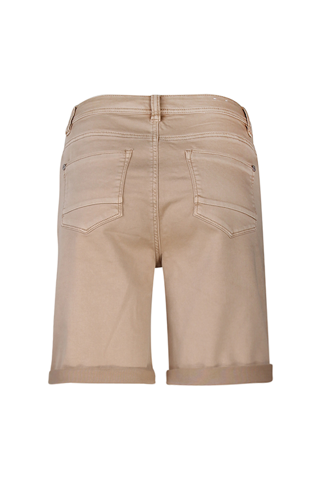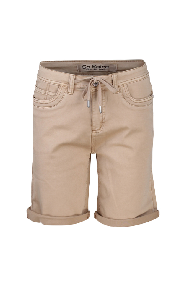 Shorts van So Soire. De shorts hebben langere pijpen en een omslag. Er zit een touwtje in de taille. De shorts hebben een rechte fit met stretch. Valt op ruim op maat. Materiaal: 81% katoen, 18% polyester, 1% elasthan. Wassen op 30 graden, niet bleken, niet in de droger, kan gestreken worden.
