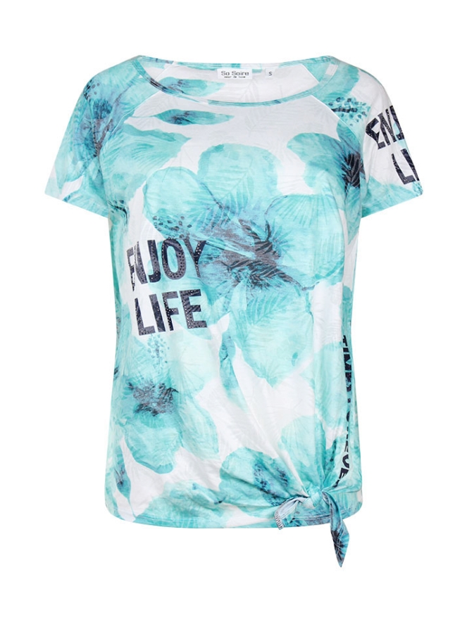 T-shirt met bloemenprint van So Soire. Het t-shirt kan worden geknoopt aan de onderkant.