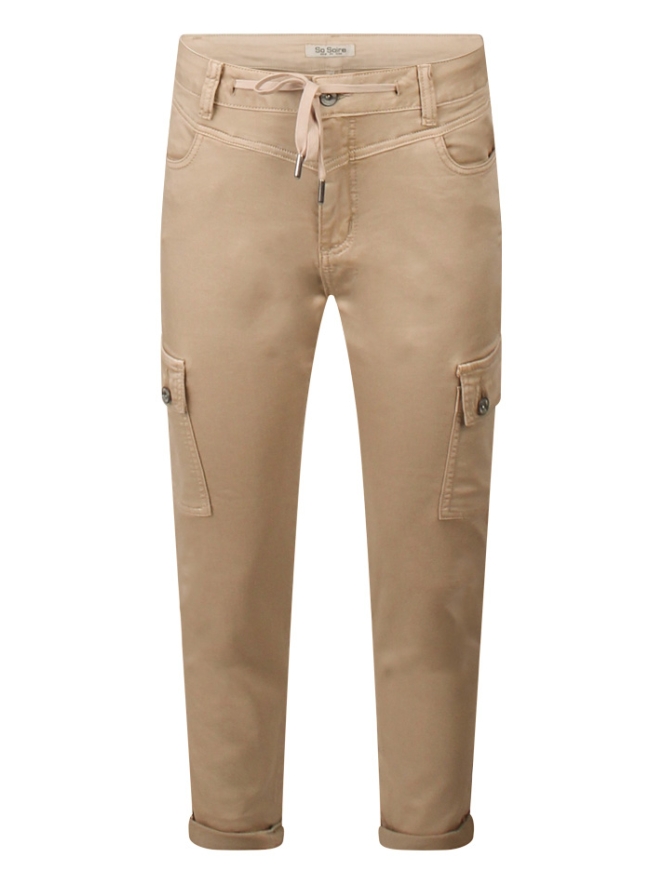 Deze cargo broek heeft twee zijklepzakken en een sierkoord.