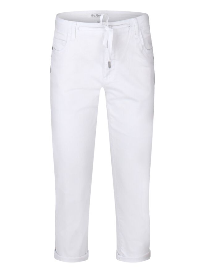 Met zijn driekwart lengte is deze denim stretch broek tijdloos en ideaal voor warmere dagen of voor diegenen die de voorkeur geven aan een iets kortere stijl. Of je nu gaat voor een relaxte look met een T-shirt en sneakers, of het wilt opliften met een blouse en hakken, deze broek voldoet aan al je stijlbehoeften.