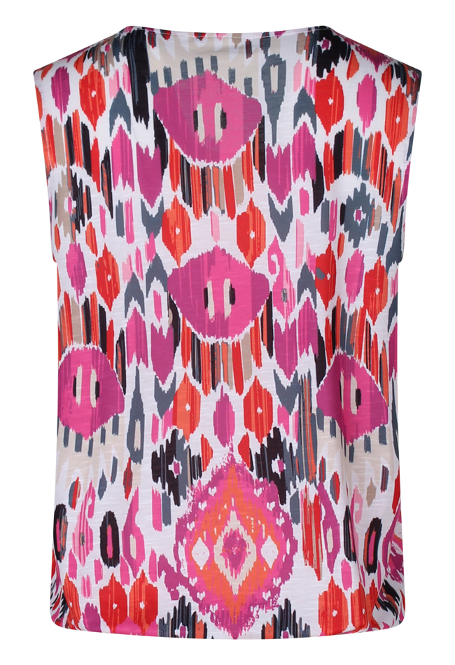 Deze singlet met V hals heeft een elastiek in de taille om het shirt iets te laten bollen.