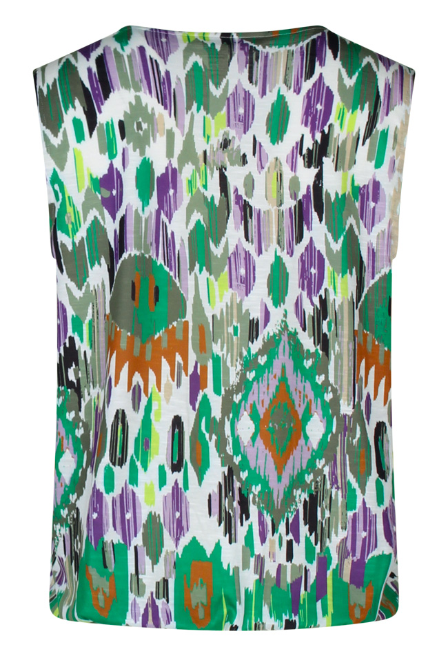 Deze singlet met V hals heeft een elastiek in de taille om het shirt iets te laten bollen.