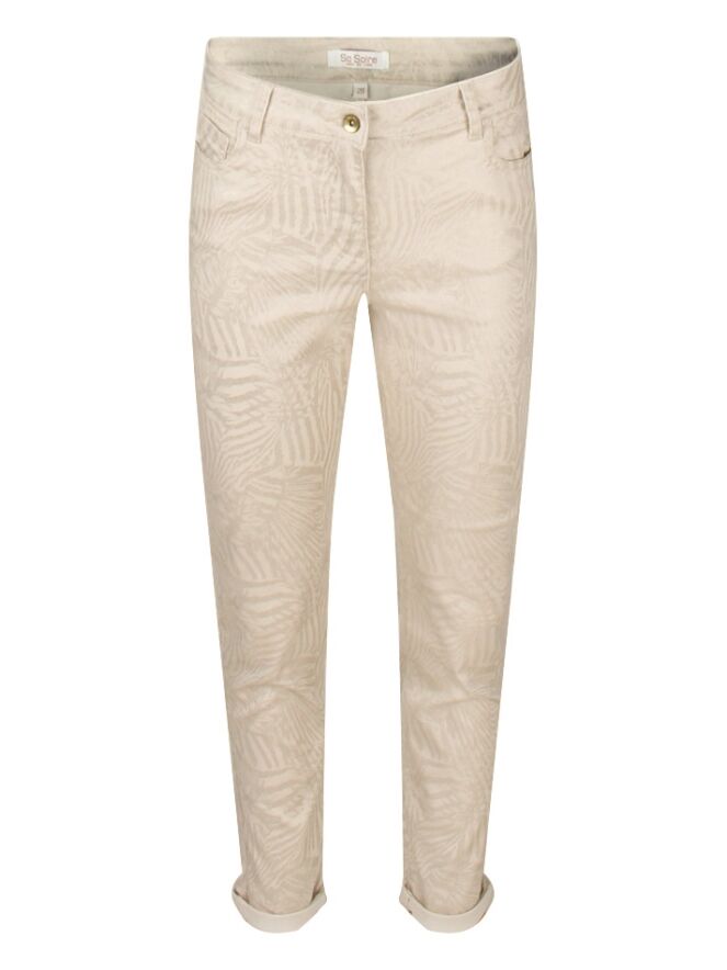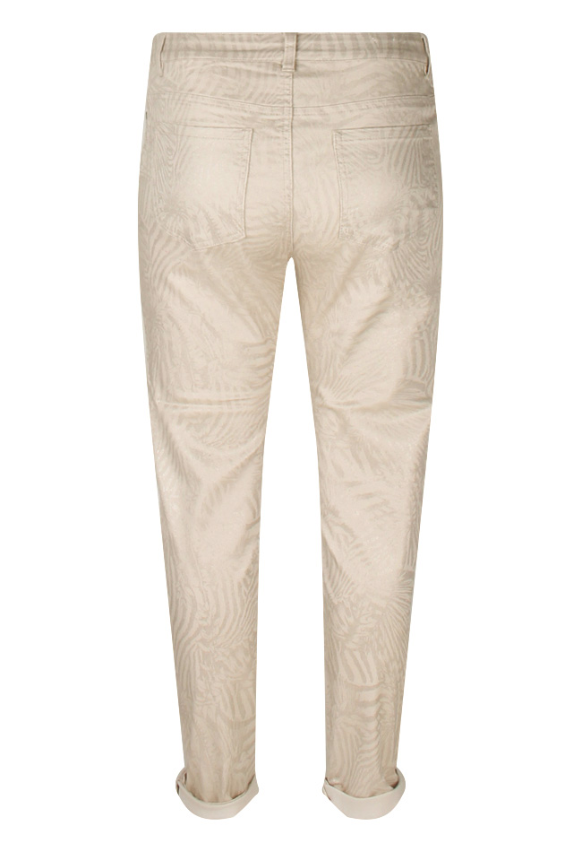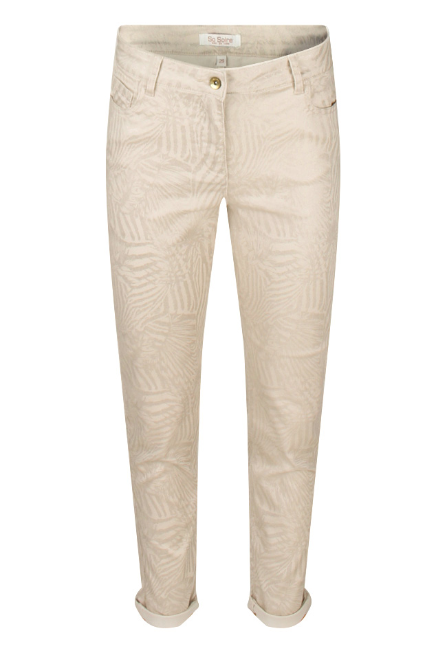 Ben je toe aan een broek met een leuke opdruk? Dan is dit zeker jouw nieuwe favoriet! Deze broek heeft een mooie subtiele folieprint met zebra bladerdesign. Echt even wat anders! 5 pocket model met rechte broekspijpen.