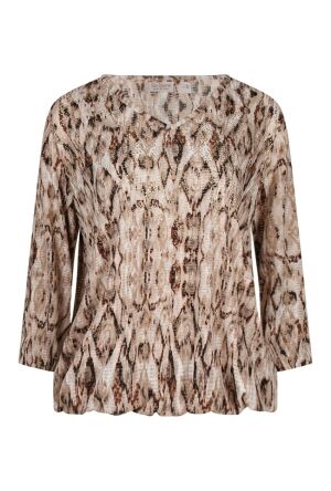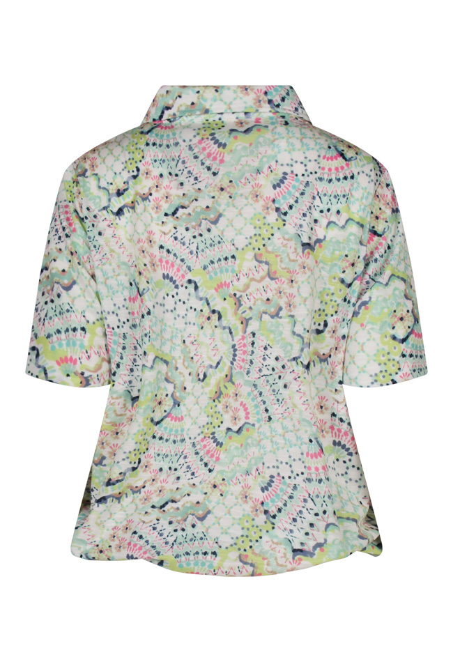 Dit T-shirt met polo hals heeft een elastiek in de middel en een multicolor design. Makkelijk te combineren op bijna iedere broek. Comfortabele fit met een eigentijds design.
