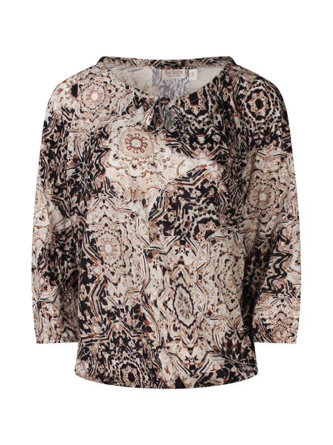 Vrolijke meerkleurige top met driekwart mouwen. Deze top heeft een elastiek in de taille om mooi te kunnen laten bollen, ook zit dit aan de mouwen. Ze zijn multi inzetbaar, tijdloos en een musthave voor de mix en match liefhebster!