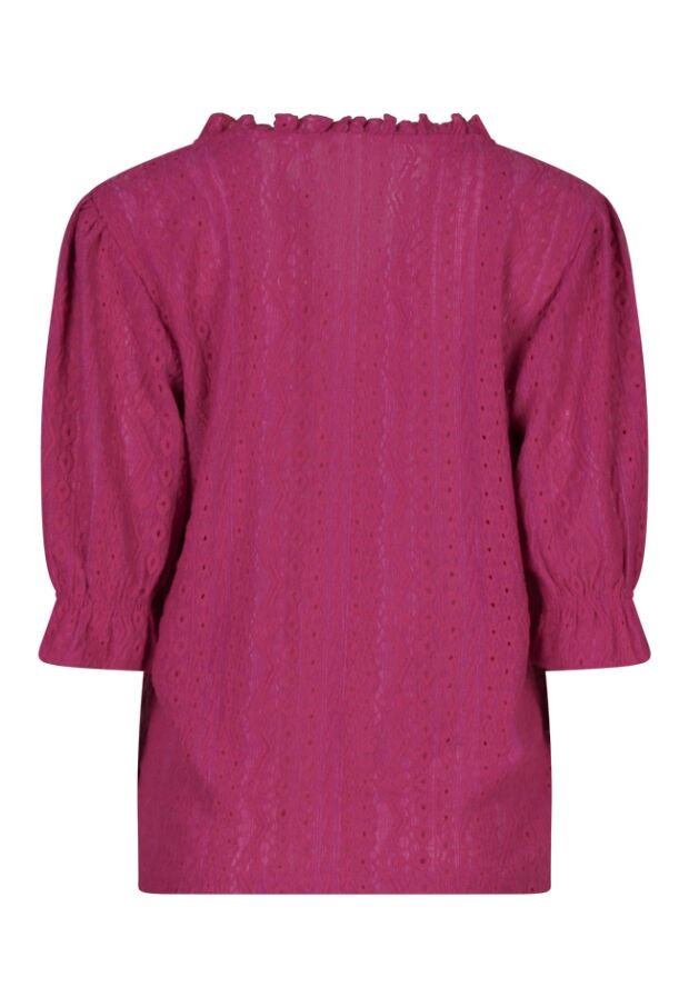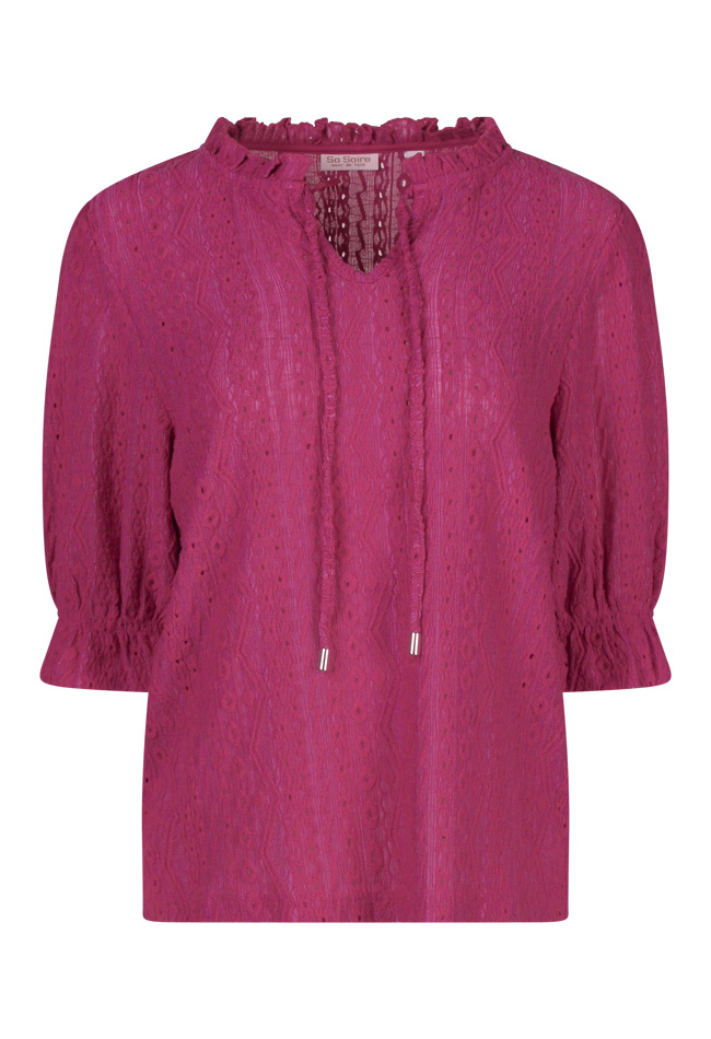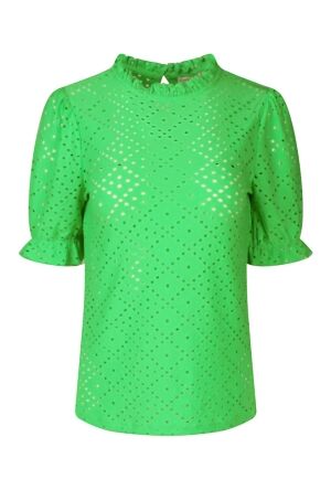 Ajour blijft een grote trend! En deze zomer laat deze top met pofmouw en een koordje voor bij de hals jou stralen! Makkelijk te combineren met een leuke blazer of spijkerjasje. Of wat dacht je van een giletje?