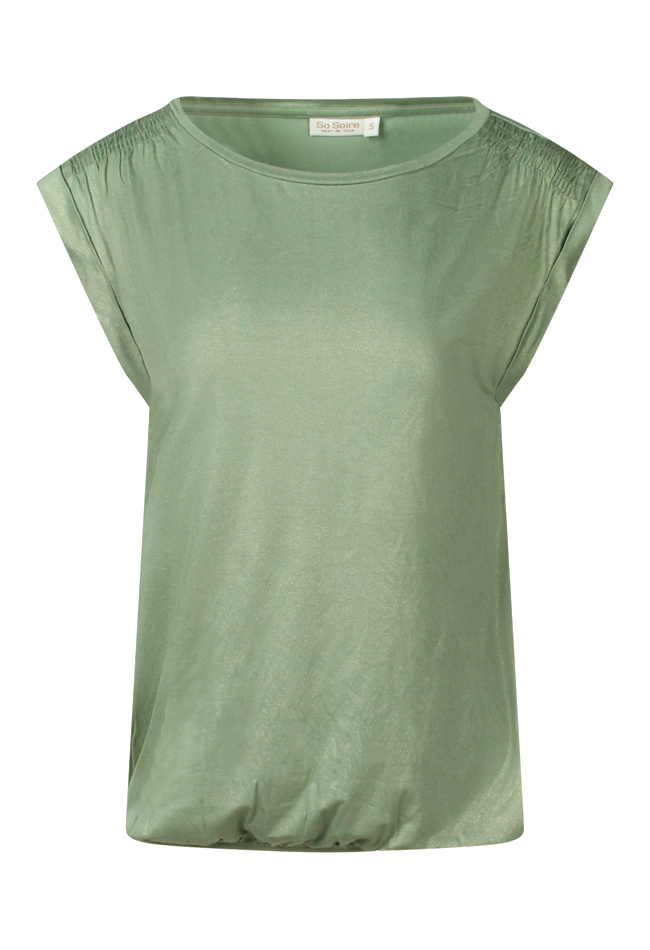 Shine baby shine! Fijn T-shirtje met een lichte schittering in de stof met een vaste mouwomslag. In de taille zit een elastiek zodat het shirt mooi bolt en dus niet nauw om zit. Door de effen kleur multi inzetbaar op shorts, broeken en rokken! Musthave!