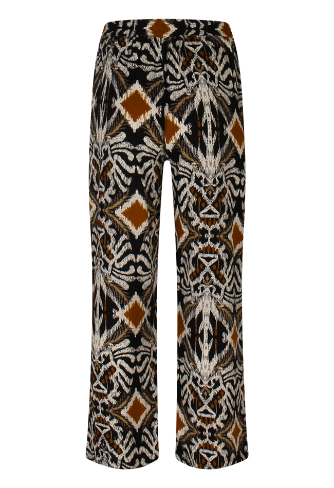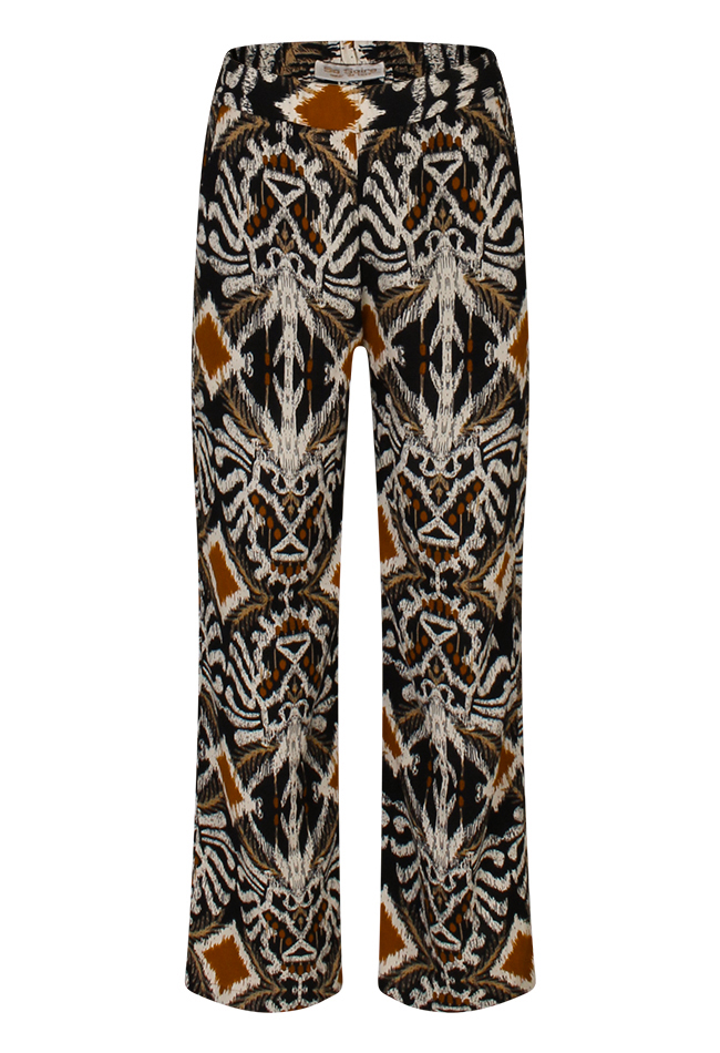 Deze broek van So Soire heeft een prachtige incadessin print. De broek heeft rechte pijpen voor een moderne uitstraling en is voorzien van twee steekzakken voor extra functionaliteit. Het elastiek in de taille aan de achterkant zorgt voor een comfortabele pasvorm die zich perfect aan je lichaam aanpast. Deze broek is ideaal te combineren met de bijpassende top (Z90760) voor een complete boho-chique outfit.