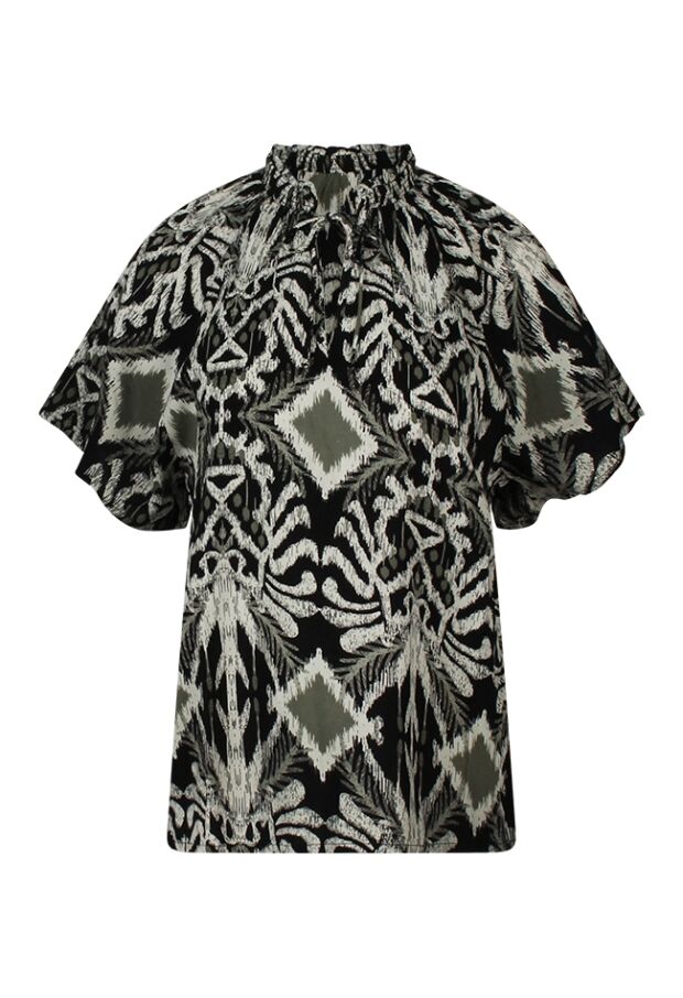 Deze bohemien dames top van So Soire heeft een prachtig, gedetailleerd incadessin dat de perfecte balans tussen stijl en comfort biedt. De V-hals en de vlindermouwen creëren een luchtige, vrouwelijke uitstraling die perfect is voor de zomer. Combineer de top met de bijpassende broek (Z90759) voor een complete, modieuze boho look die je de hele dag kunt dragen.