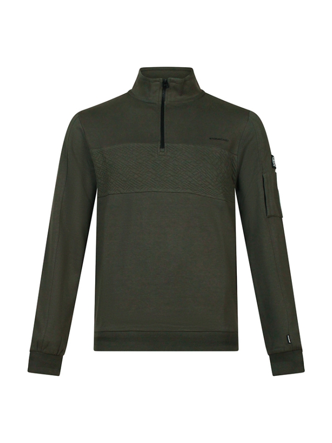 Sweater met korte rits, fijne warme col en een rechte baan voor over de sweater.