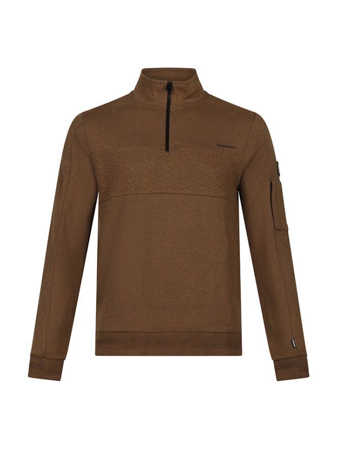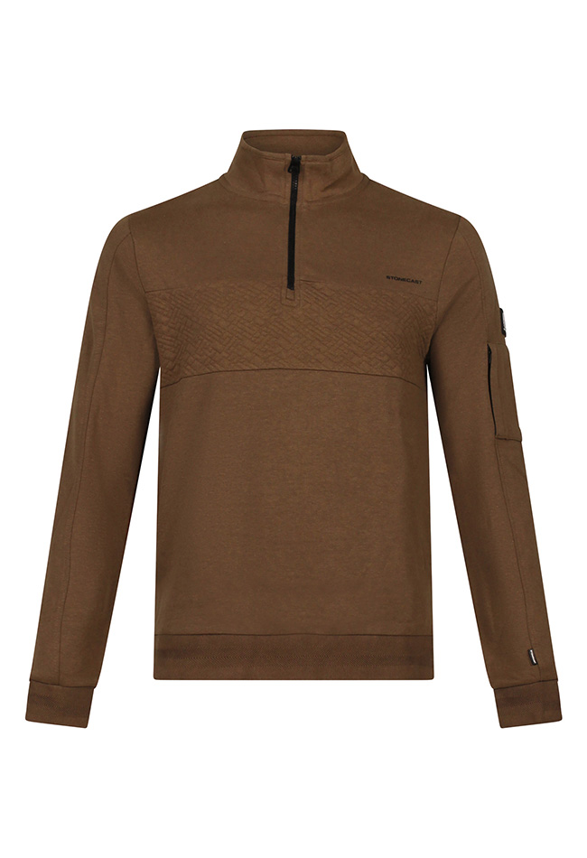 Sweater met korte rits, fijne warme col en een rechte baan voor over de sweater.