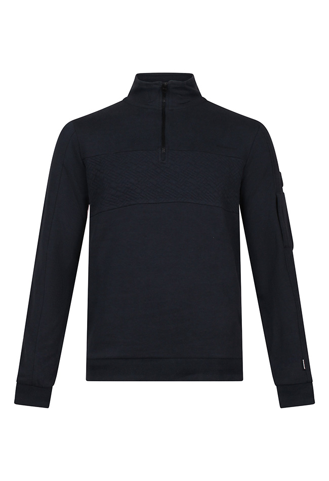 Sweater met korte rits, fijne warme col en een rechte baan voor over de sweater.