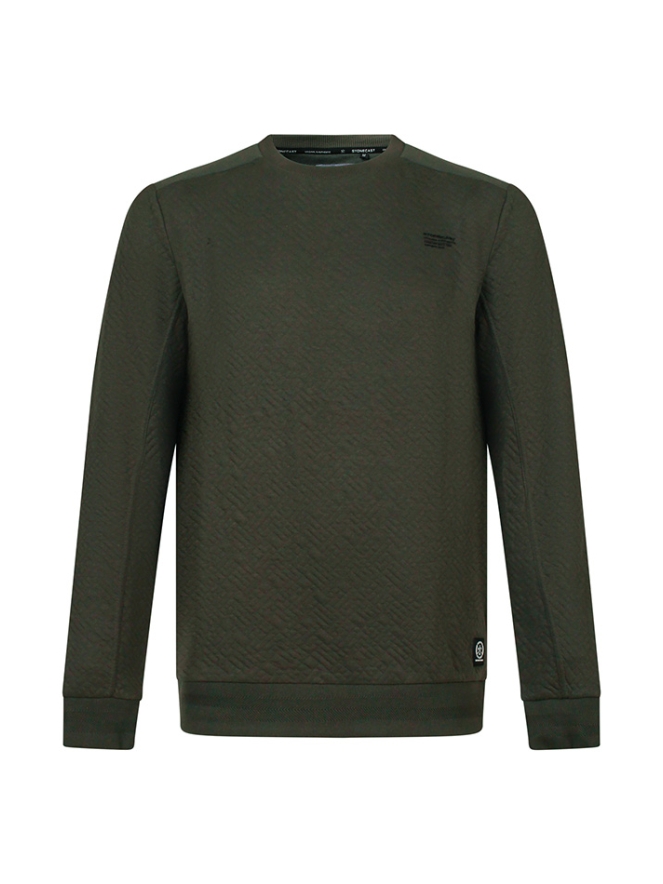 Deze sweater van Stonecast heeft een subtiel patroontje in de stof. Makkelijk te combineren met jeans voor een verzorgde casual look.
