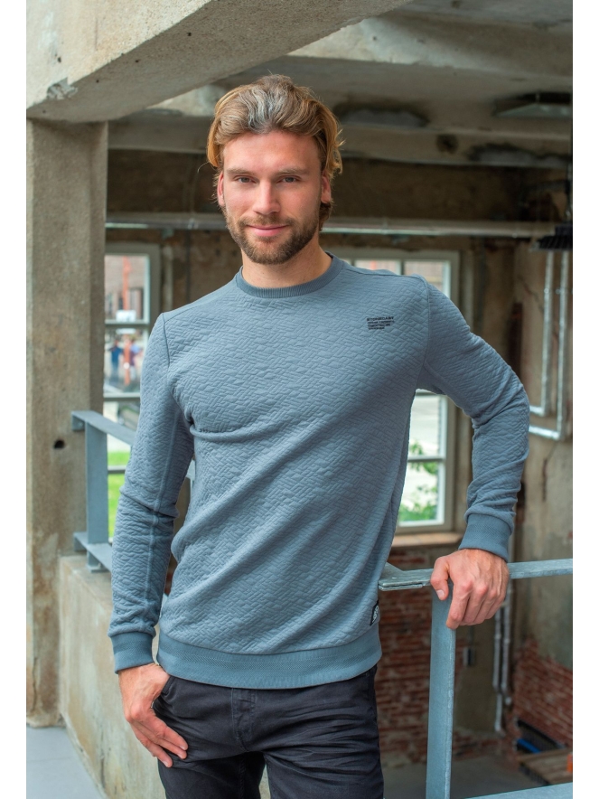 Deze sweater van Stonecast heeft een subtiel patroontje in de stof. Makkelijk te combineren met jeans voor een verzorgde casual look.