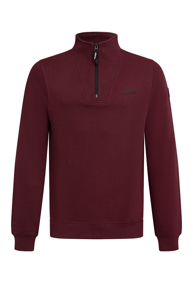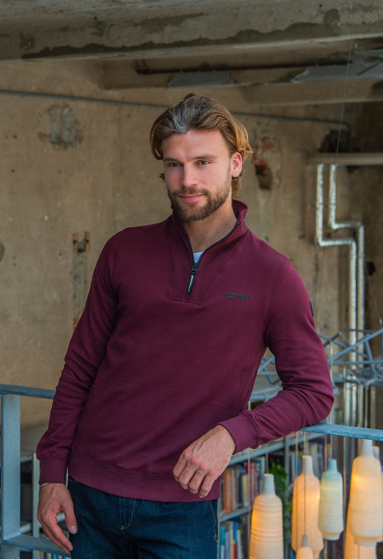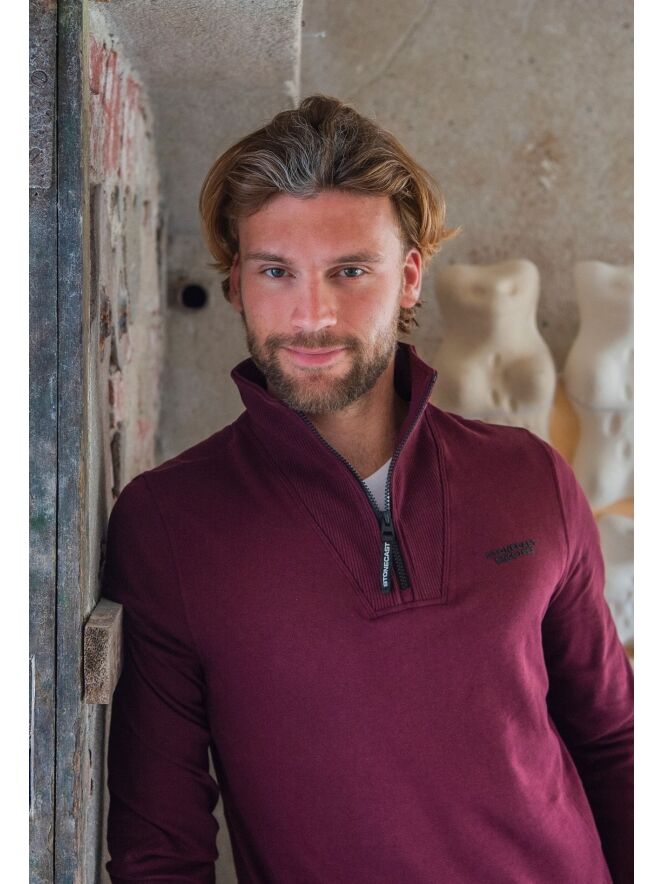 Deze sweater van 100% katoen heeft een korte rits met een fijn sluitende col.