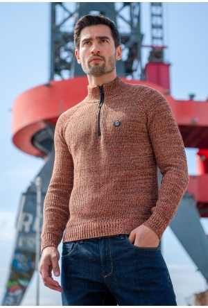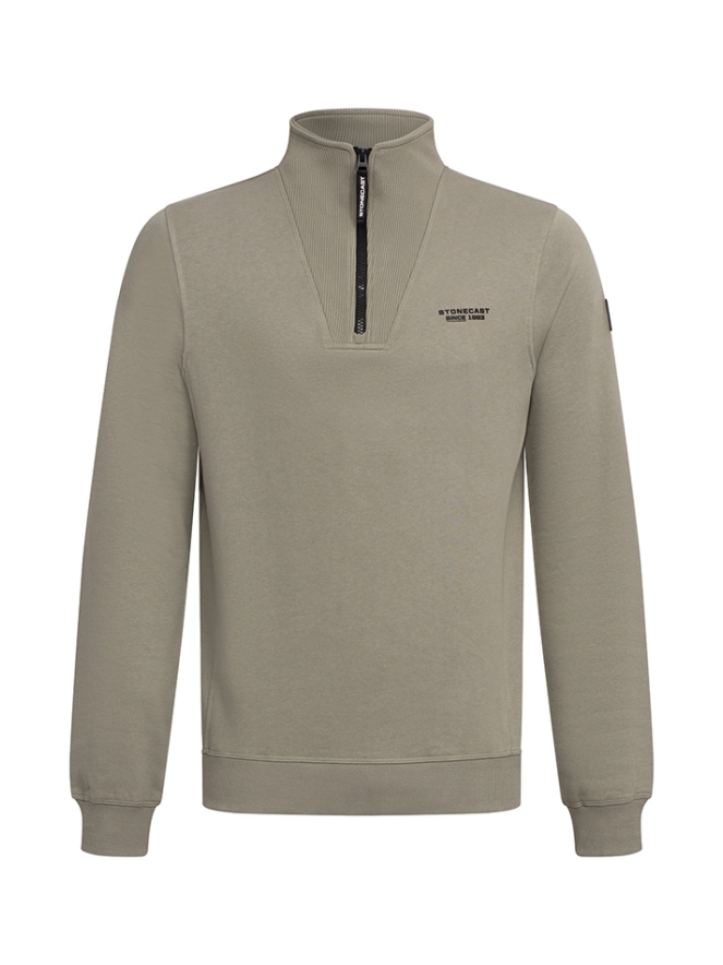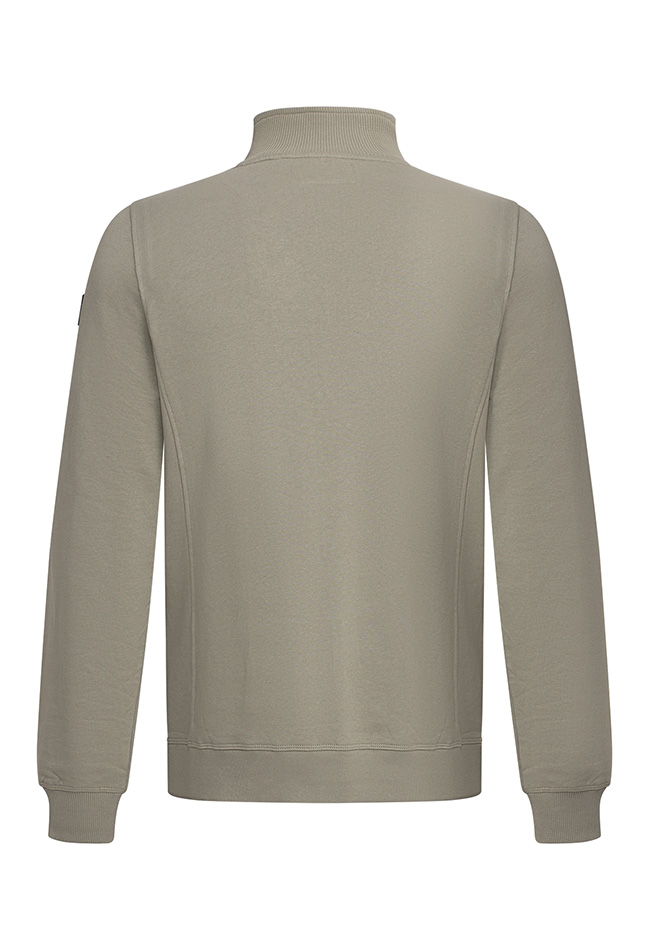 Deze sweater van 100% katoen heeft een korte rits met een fijn sluitende col.