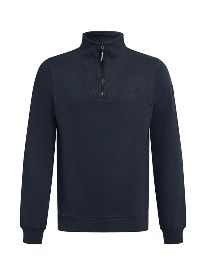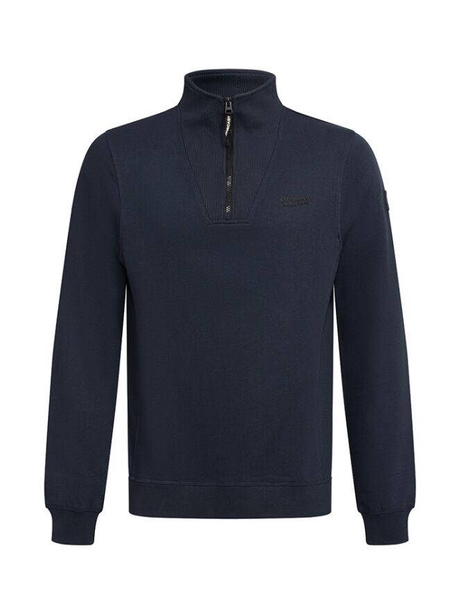 Deze sweater van 100% katoen heeft een korte rits met een fijn sluitende col.