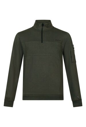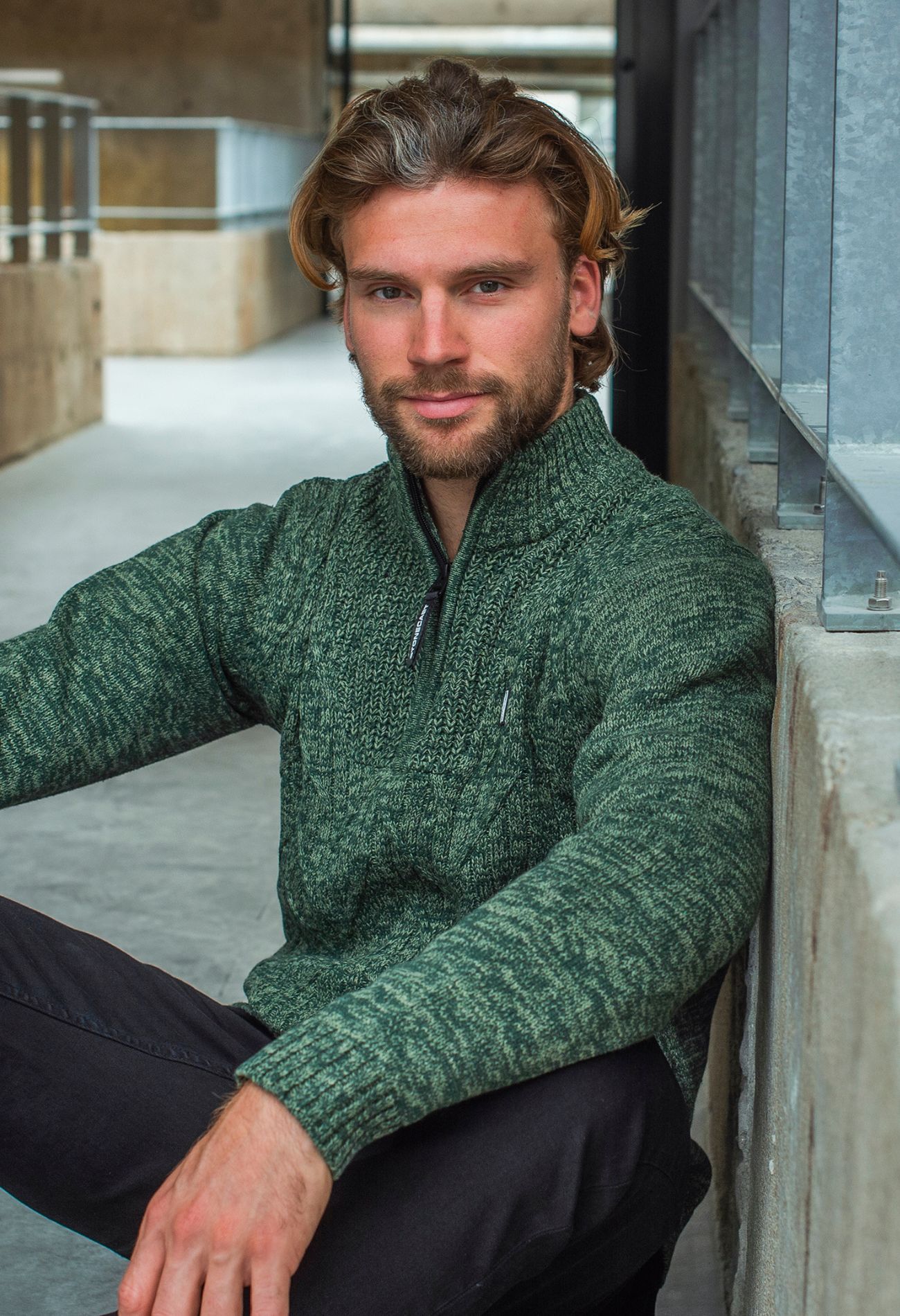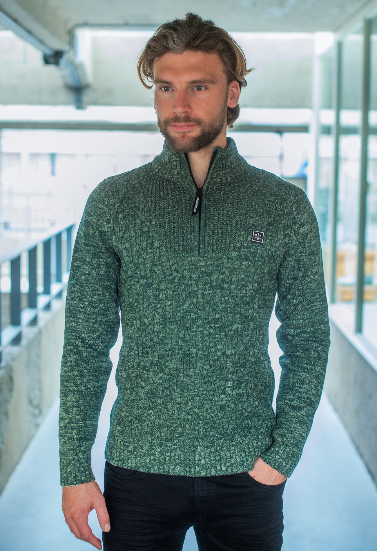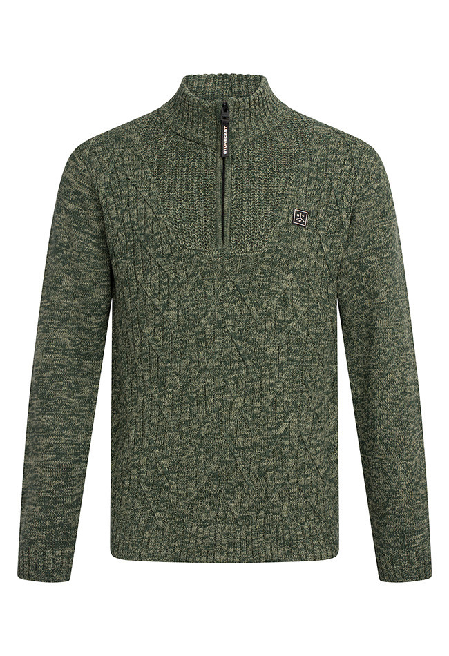 Warme pullover met een kabelpatroon, hoge kraag en een rits.