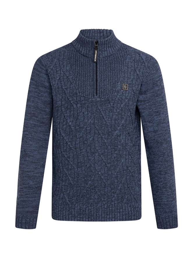Warme pullover met een kabelpatroon, hoge kraag en een rits.