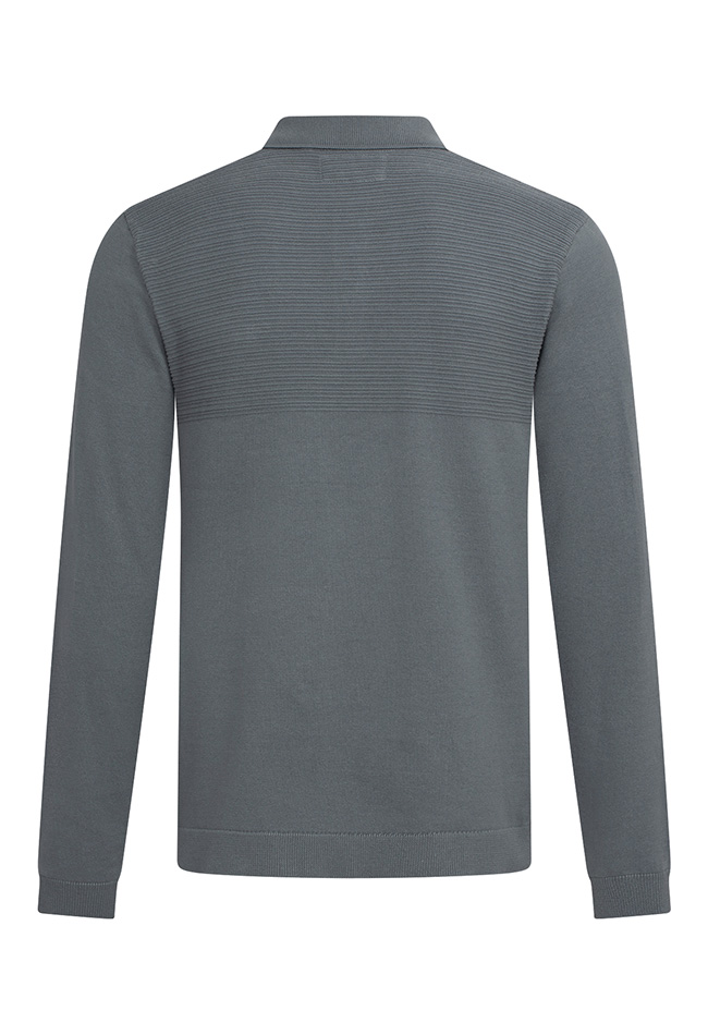 Mooie trui voor heren met verschillende structuren. Met een polo kraag dus ideaal om er nog een net overhemd onder te kunnen dragen.