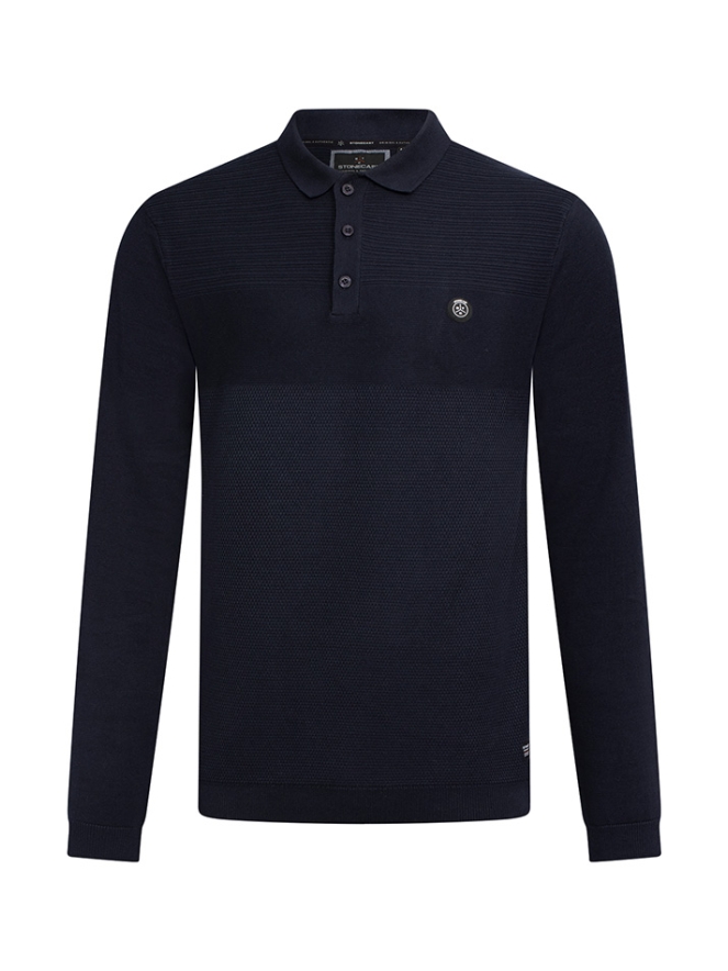 Mooie trui voor heren met verschillende structuren. Met een polo kraag dus ideaal om er nog een net overhemd onder te kunnen dragen.