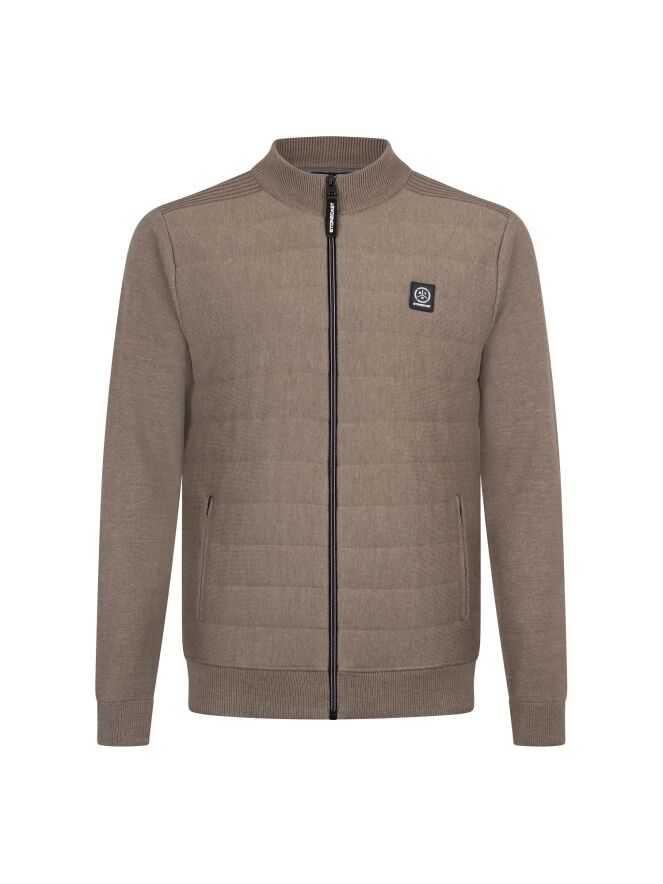 Vlot vest van een fijn gebreide stof met gestepte voorkant en ritszakken.