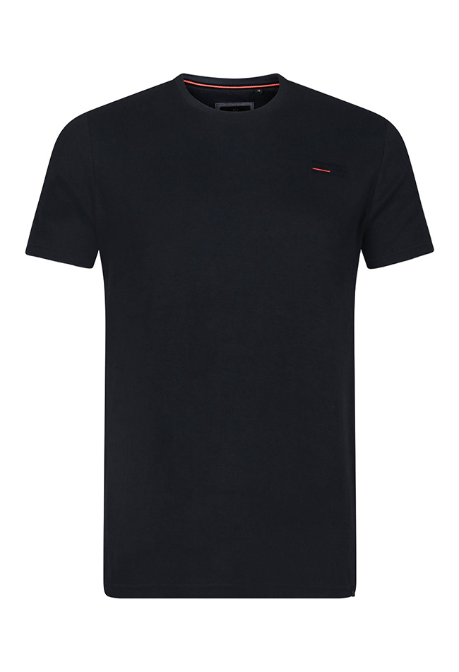 Gewoon een T-shirt met een kleine relief in de stof. Verder geen poespas. In 3 kleuren.