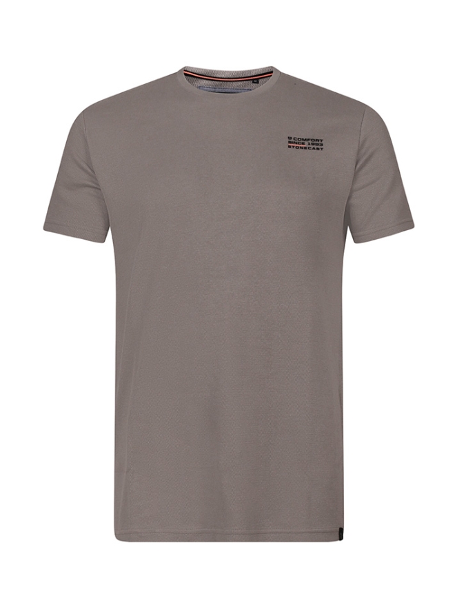 Gewoon een T-shirt met een kleine relief in de stof. Verder geen poespas. In 3 kleuren.