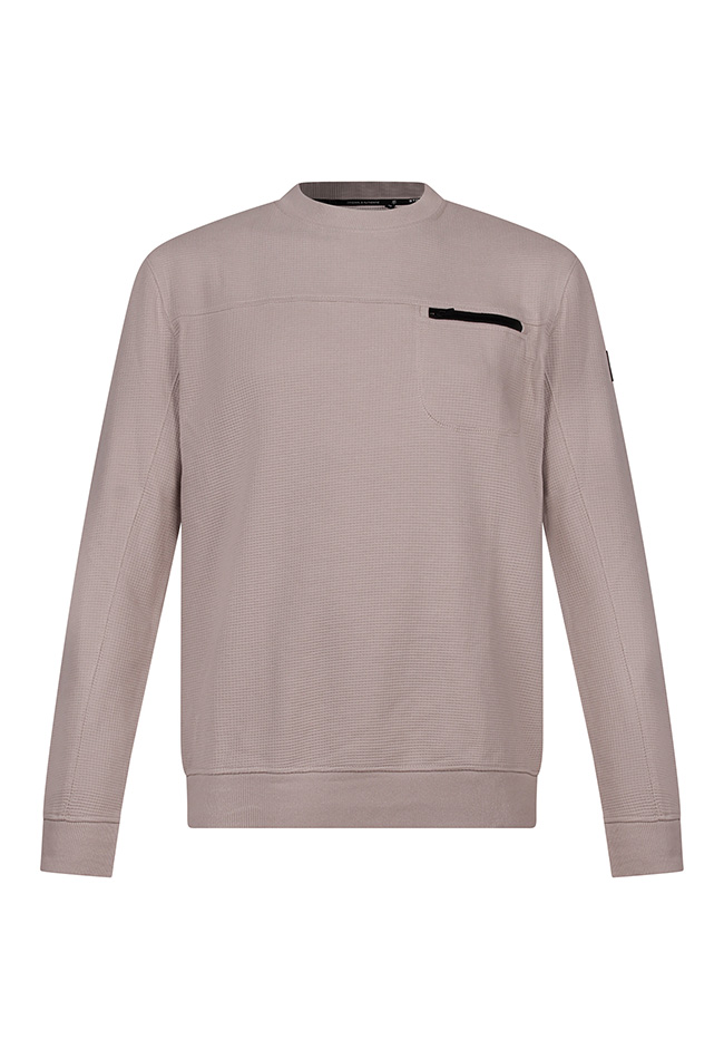 Deze sweater heeft een wafelkatoen look met borstzakje. Laat zich prima combineren met een mooie jeans voor je casual look.