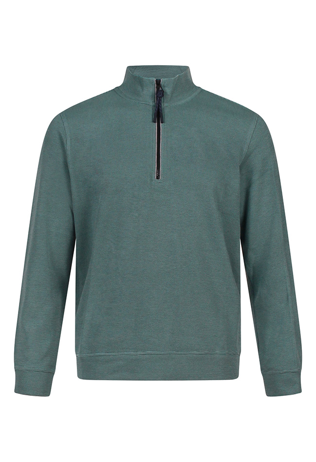 Deze sweater heeft een korte rits met een fijne hoogsluitende kraag.