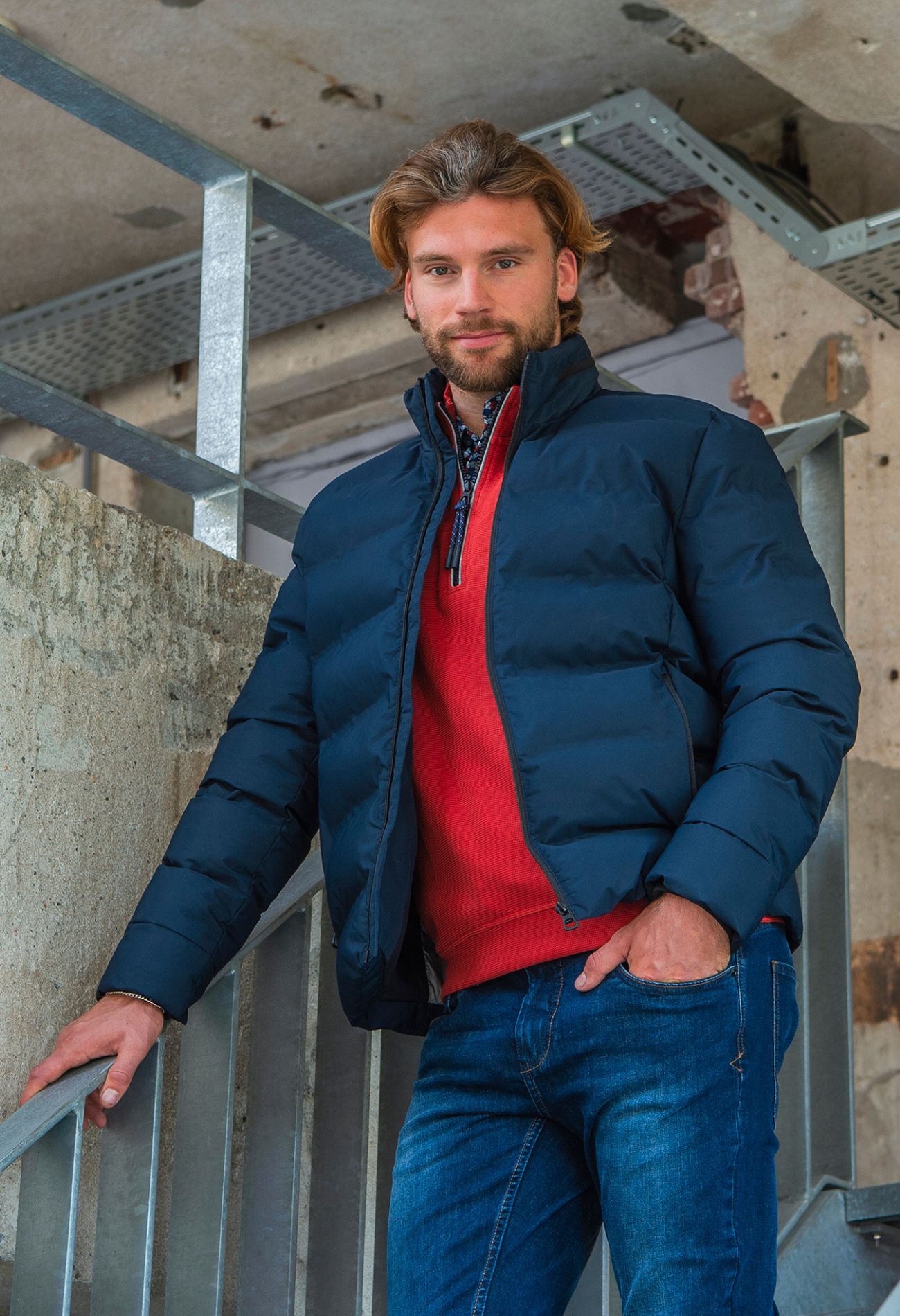 Mooie gewatteerde jas van Stonecast met ritszakken en een uitritsbare capuchon in de kraag.