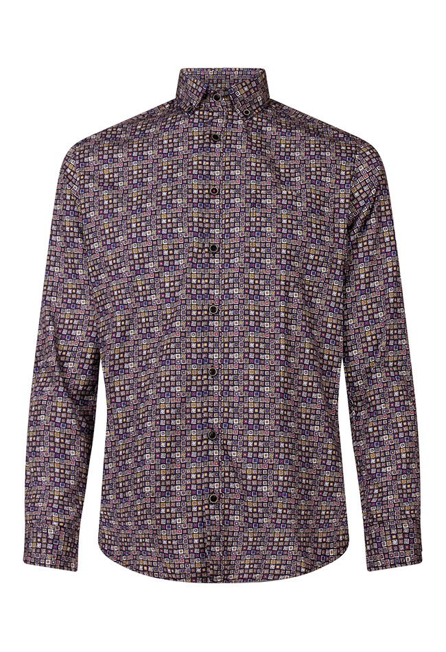 Overhemd van 100% katoen met retro printje. Button down, regular fit met een borstzakje.