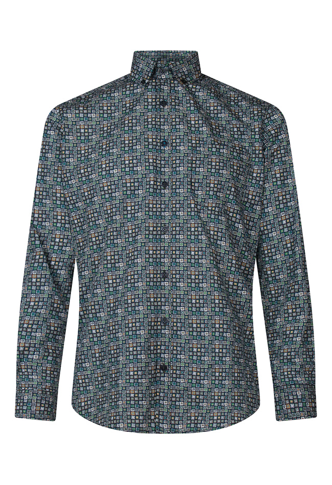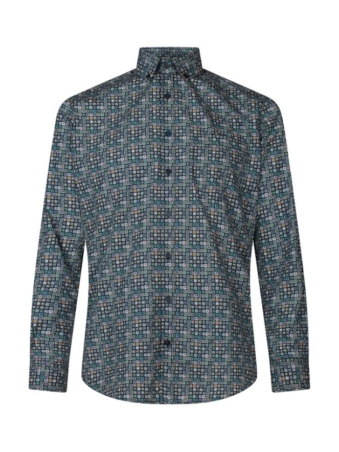 Overhemd van 100% katoen met retro printje. Button down, regular fit met een borstzakje.