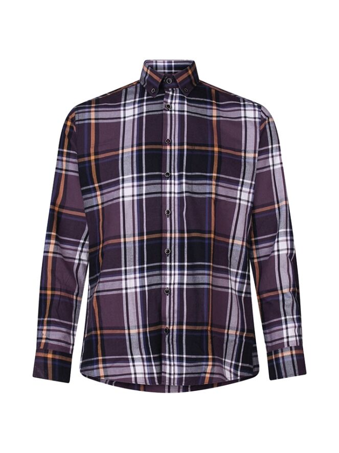 100% Katoenen overhemd in een mooie paarse ruit, regular fit, button down met een borstzakje.