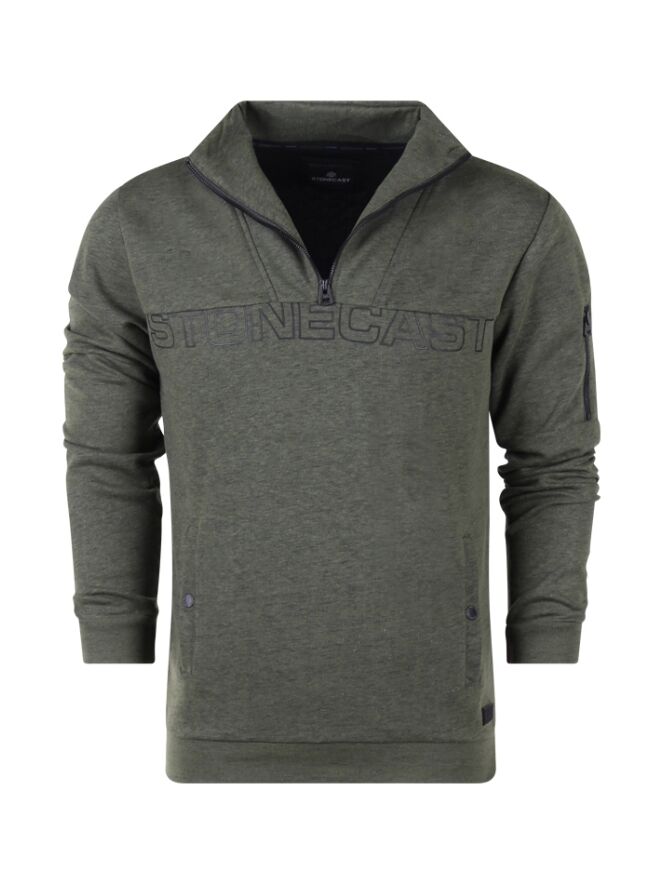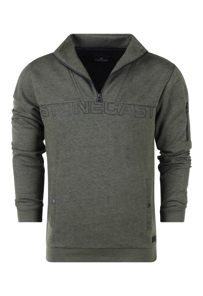 Trui van Stonecast. De trui heeft een rits bij de hals, op de voorkant staat een logo. Op de voorkant zit een zak. Op de mouw heeft een rits zak. Materiaal: 65% polyester, 35% katoen. Wassen op 30 graden, niet in de droger, niet bleken, kan gestreken worden.