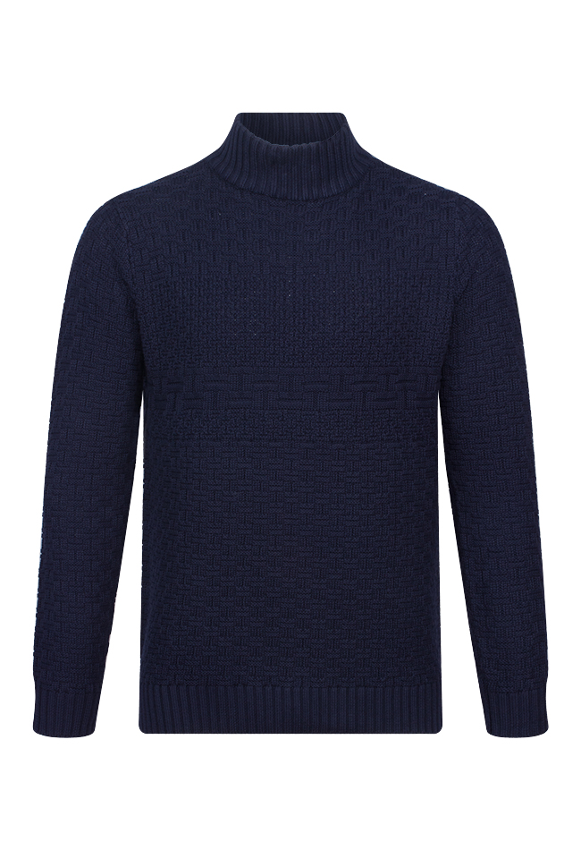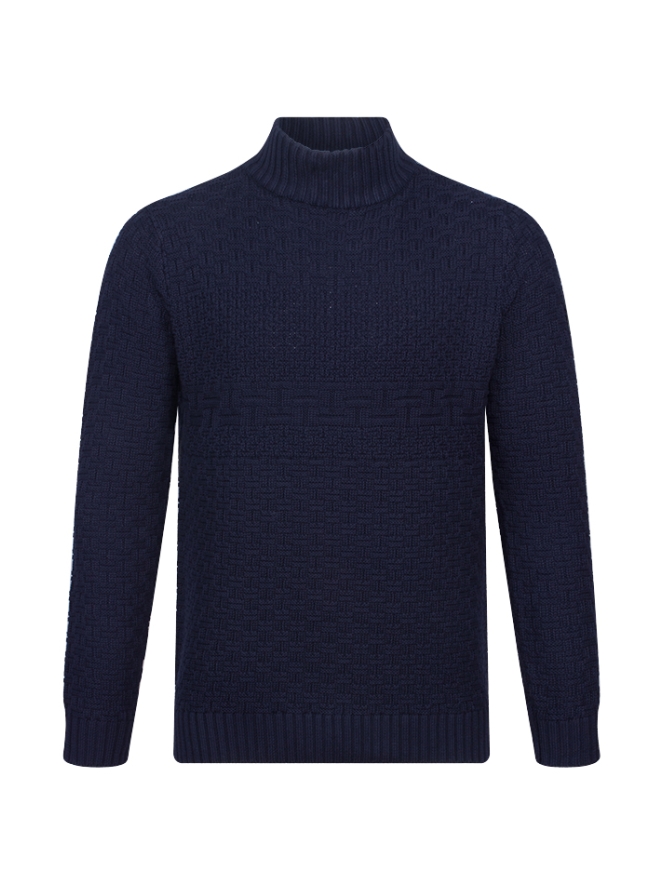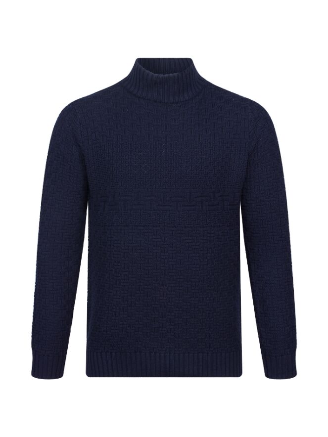 Gebreide trui van Stonecast. De trui heeft een all over gevlochten patroon en een hoge col. Materiaal: 100% katoen. Wassen op 30 graden, niet bleken, niet in de droger, kan gestreken worden.