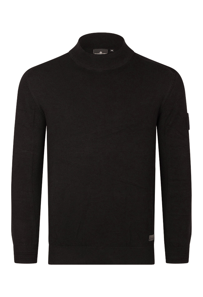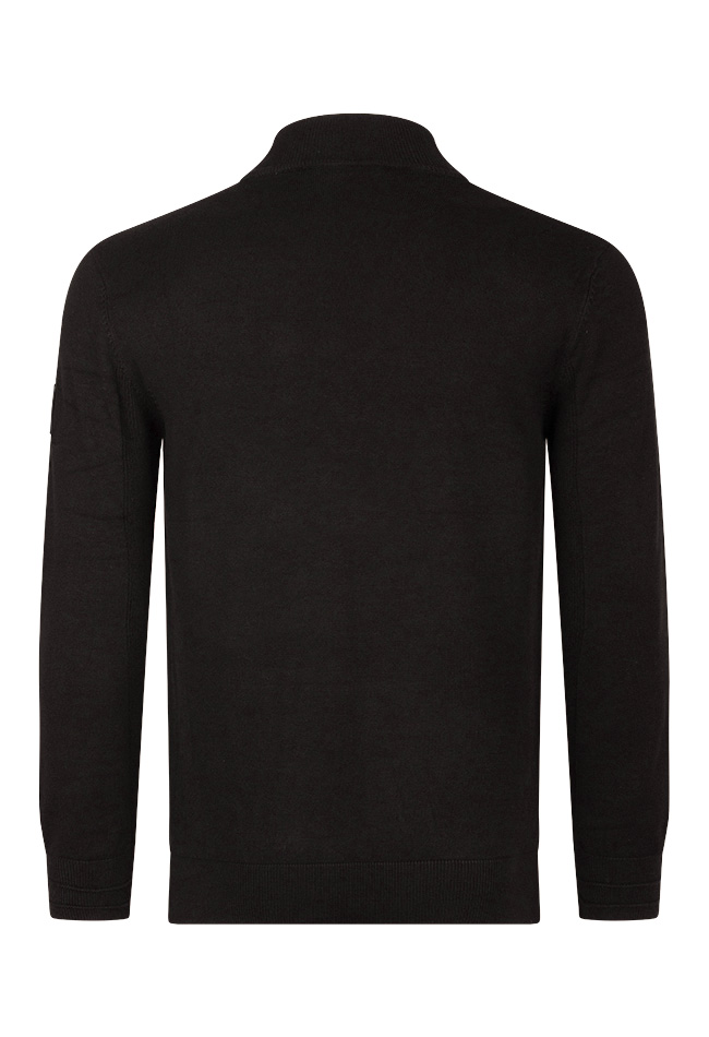 Deze fijn geweven soepel vallende trui met lage kol heeft een logo plaatje op de linker bovenarm.