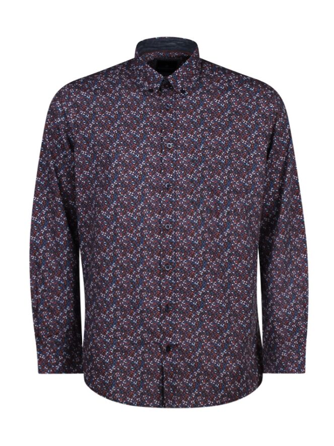 Dit heren overhemd heeft een subtiel gekleurd wiebertjes design.