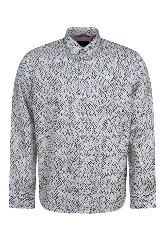Deze blouse heeft een 2 kleurig vlekjes design. De blouse heeft lange mouwen en is een recht model, regular fit.