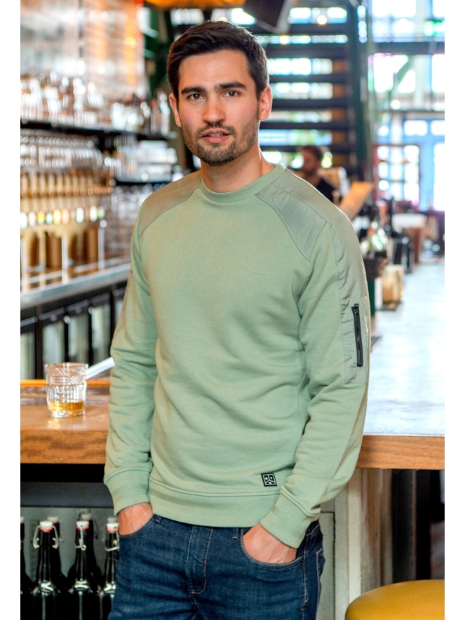 Fijne casual sweater van sweatstof met schouderstukken en een ritszakje op de bovenarm.