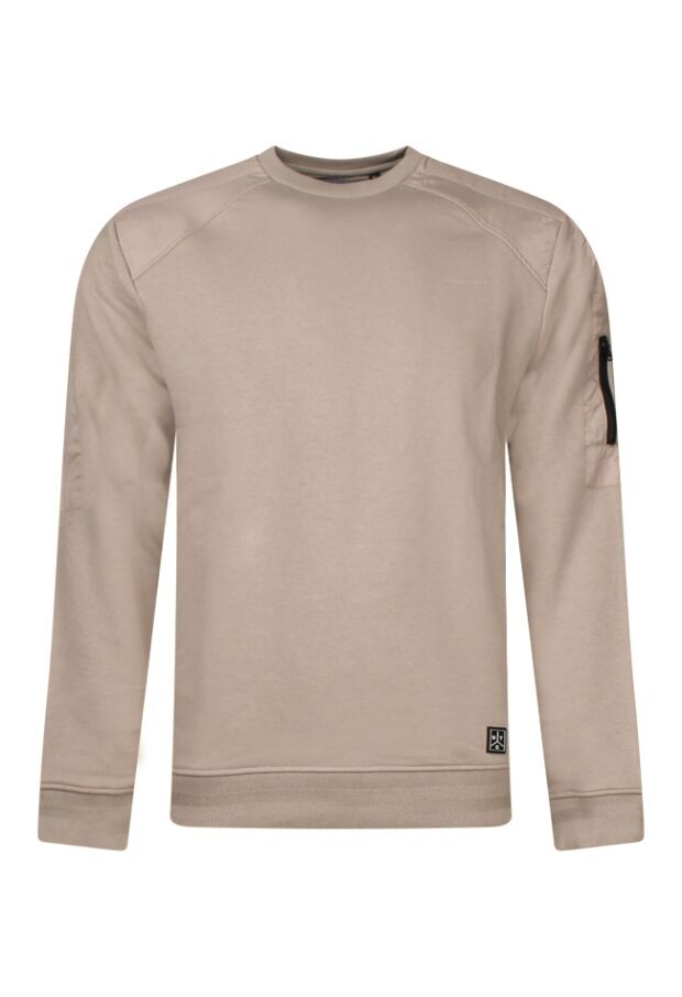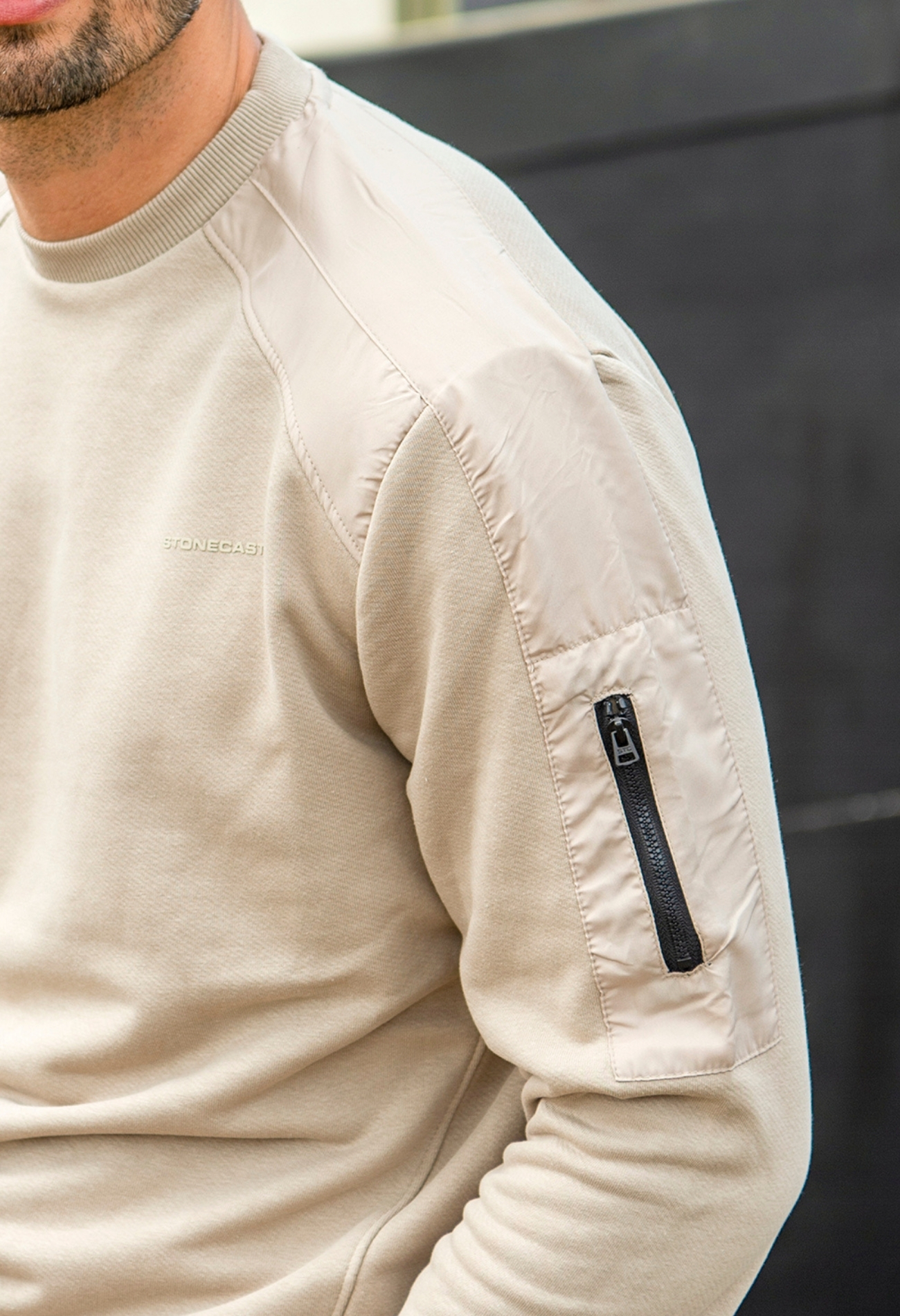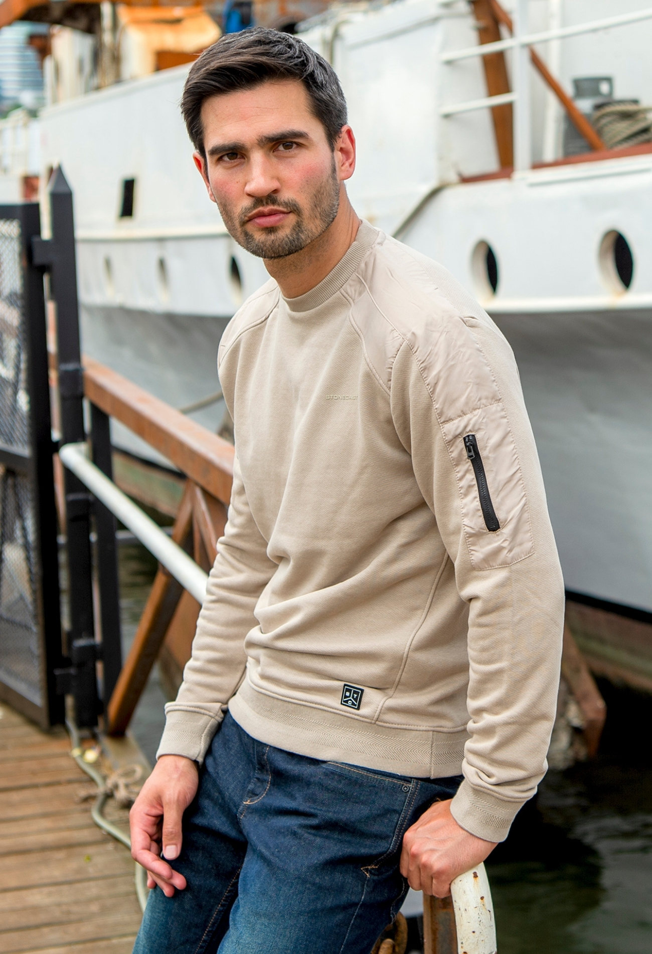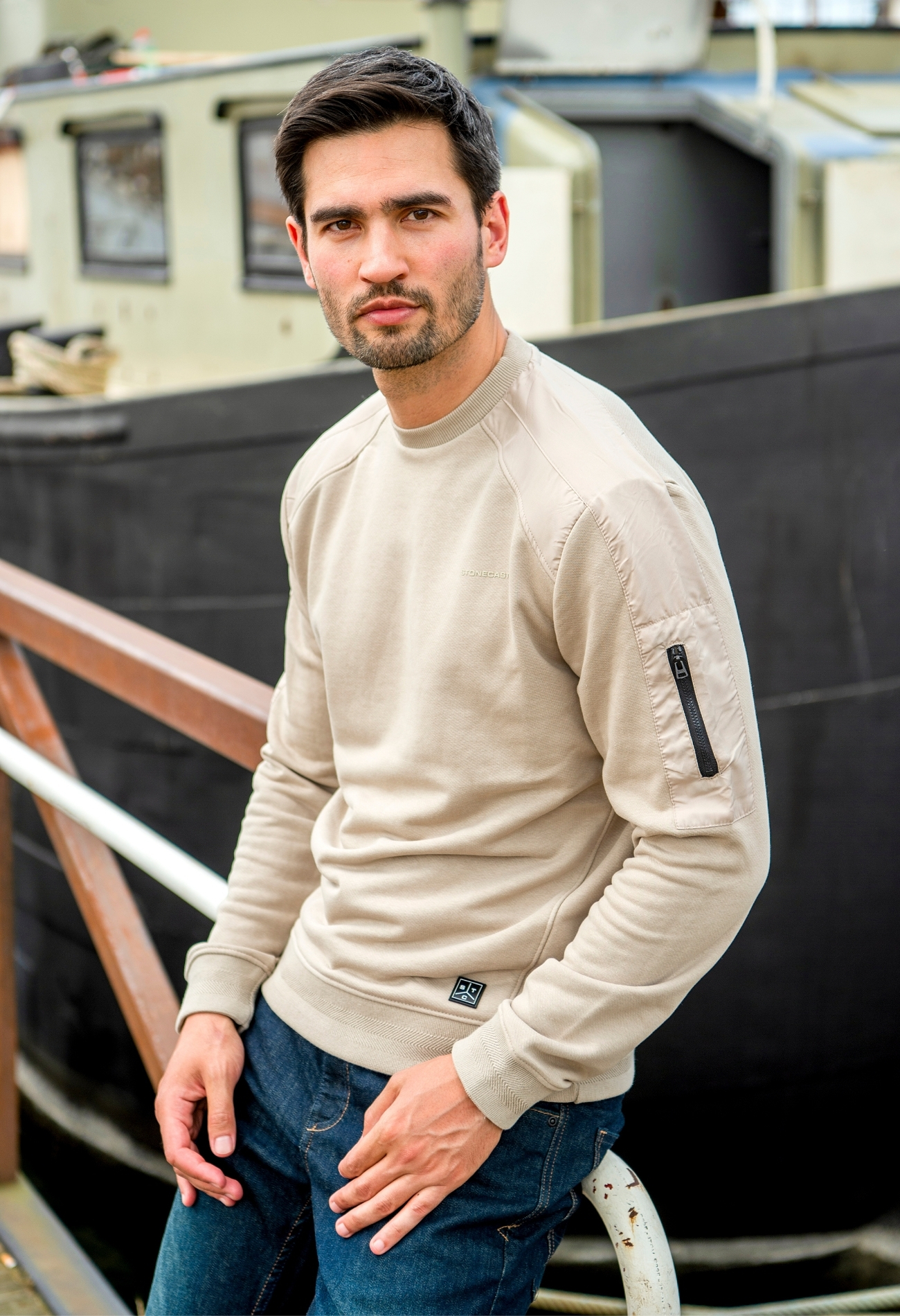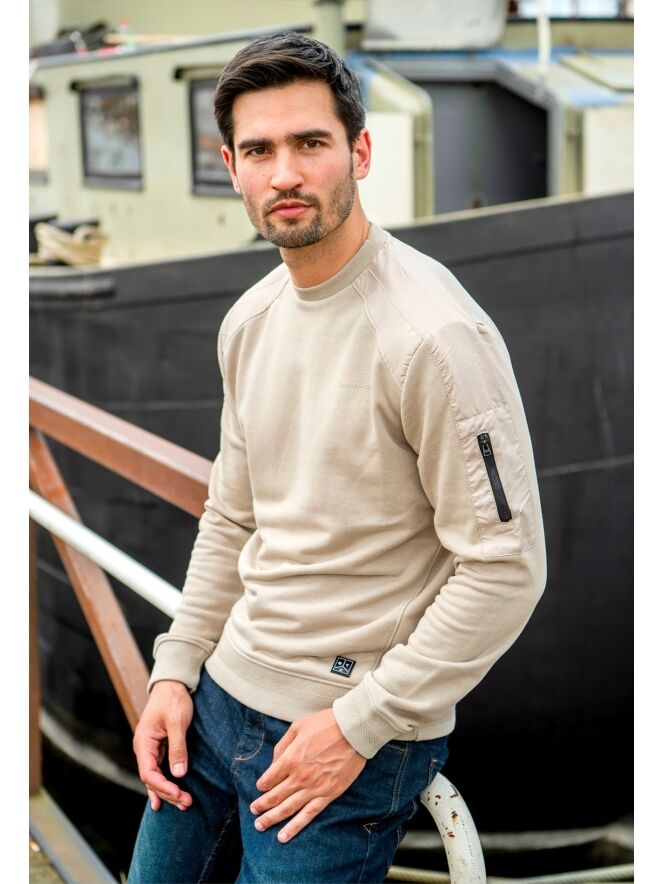 Fijne casual sweater van sweatstof met schouderstukken en een ritszakje op de bovenarm.