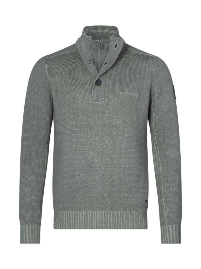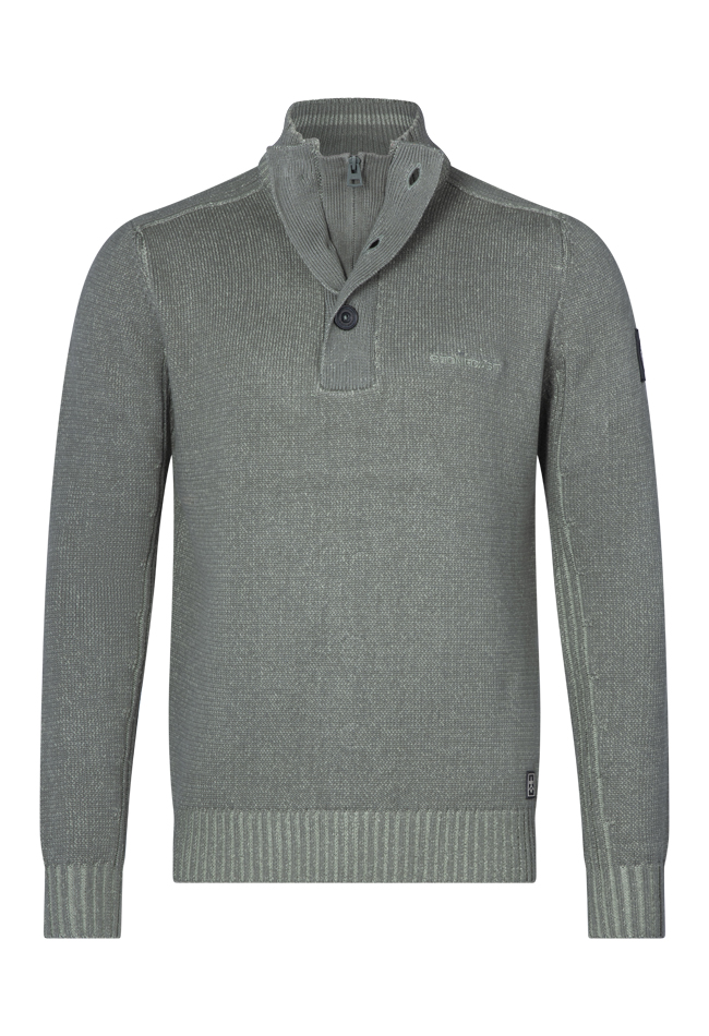 Fijne trui van ons eigen merk Stonecast. Deze trui heeft een dubbele kraag en sluit met een driekwart rits met daaroverheen knopen. Heerlijk warm! Gemeleerde look. Stijlvol en tijdloos casual.
