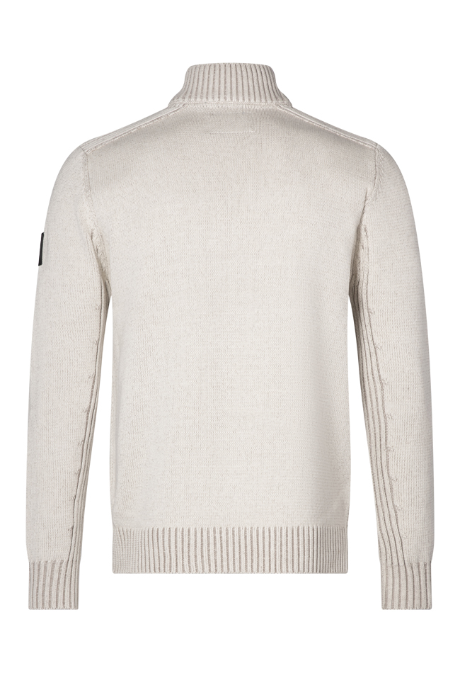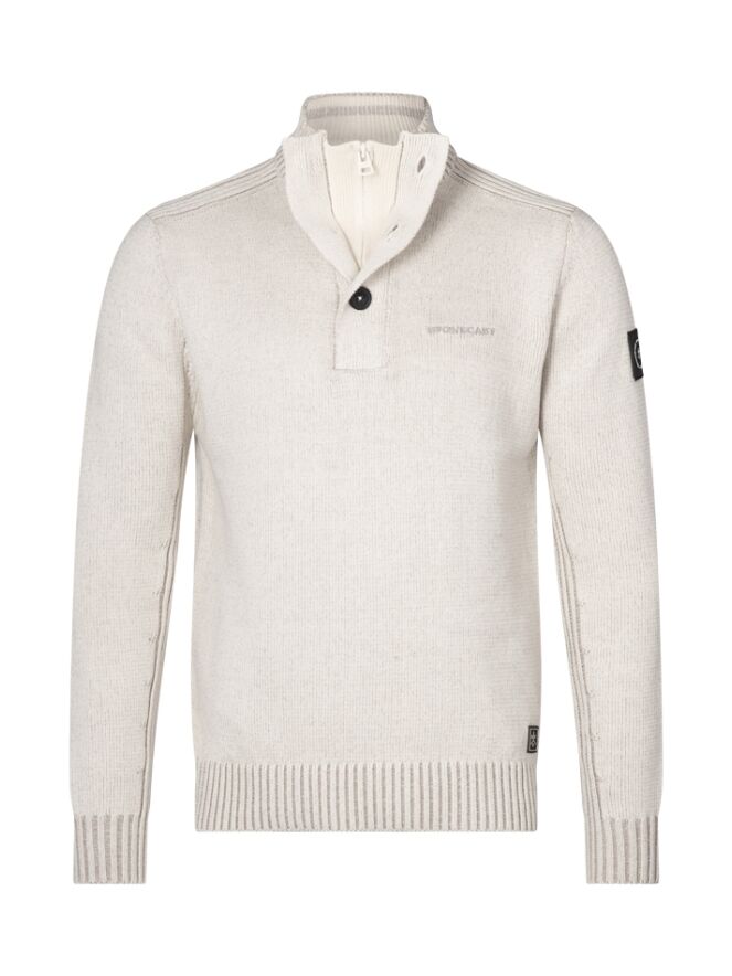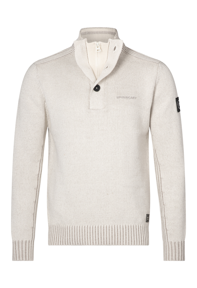 Fijne trui van ons eigen merk Stonecast. Deze trui heeft een dubbele kraag en sluit met een driekwart rits met daaroverheen knopen. Heerlijk warm! Gemeleerde look. Stijlvol en tijdloos casual.