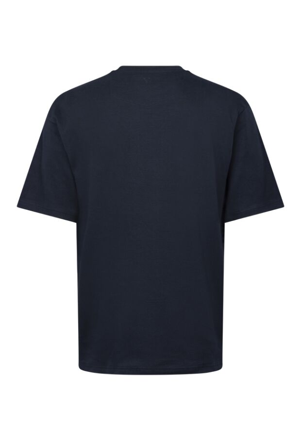 Effen heren t-shirt gemaakt van een dikke kwaliteit, op de borst staat een kleine tekst print. Het t-shirt is leuk te combineren onder een jack in overhemd stijl en boven een jeans.
